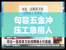 随着制造业的蓬勃发展,五金冲压行业在句容地区也呈现出繁荣景象,为满足企业对于人才的需求,句容五金冲压工招聘网近期发布了最新招聘信息,为广大求职者提供了众多就业机会。