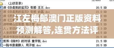 在探讨“江左梅郎澳门正版资料预测解答,连贯方法评估_R版9.794”这一复杂而精细的主题时,我们首先需要了解“江左梅郎”在澳门政策文件中的定位与作用。作为澳门地区独特的文化符号,“江左梅郎”不仅是对历史记忆的传承,更是对未来发展的预测与规划。 本文旨在通过详细的资料预测解答,提供一个连贯的政策评估方法,以便更好地理解和应用于澳门的政策领域。