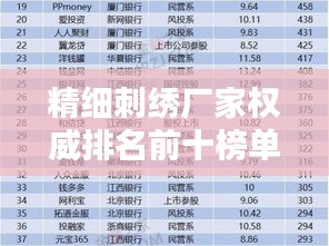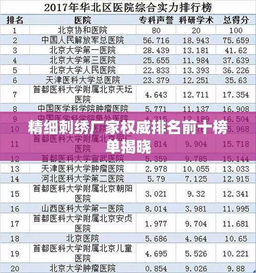 刺绣是中国传统工艺之一,随着时代的变迁,刺绣工艺逐渐发展并受到越来越多人的喜爱,市场上涌现出许多精细刺绣厂家,其中排名前十名的厂家在行业内拥有较高的知名度和良好的口碑,本文将为您介绍这些精细刺绣厂家的相关信息。