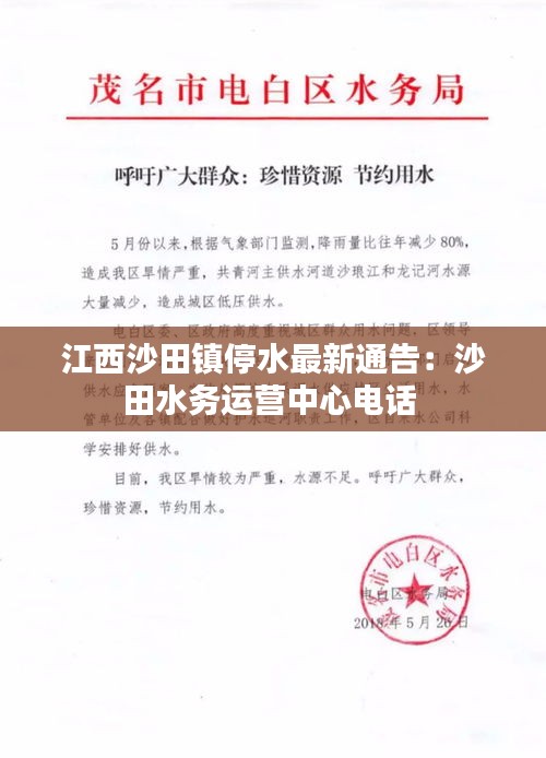 转载请注明来自江西北定建设工程服务体系,本文标题:《江西沙田镇停水最新通告:沙田水务运营中心电话 》