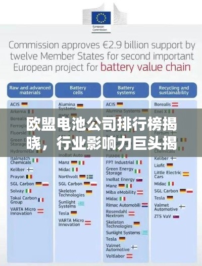在全球电池产业迅猛发展的背景下,欧盟的电池公司表现尤为突出,本文将为您介绍欧盟电池公司的排名及其行业影响力,带您走进这个充满活力的领域。