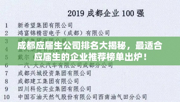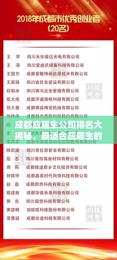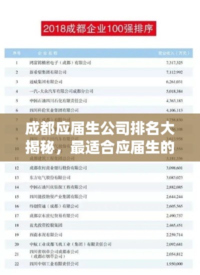 对于即将走出校园的成都应届生来说,选择一个适合自己的公司是非常重要的,为了帮助广大应届生了解成都地区的企业情况,本文将对成都地区的企业进行排名查询,并介绍一些最适合应届生的公司。