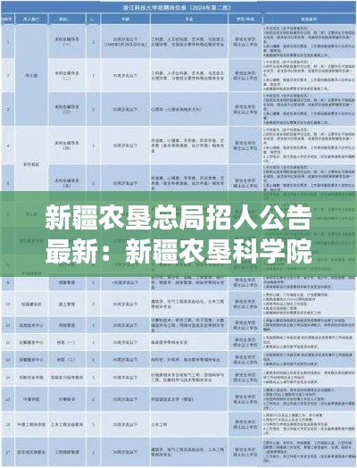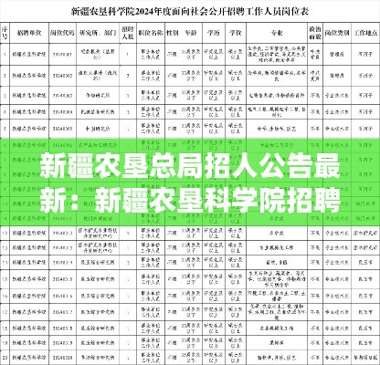 新疆农垦总局作为我国重要的国有农业企业,一直以来都在为新疆的农业发展和边疆稳定做出贡献。为了进一步加强企业实力,满足业务发展需求,新疆农垦总局最新发布了招人公告,诚邀有志之士加入。