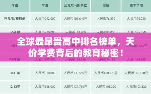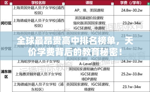 随着全球经济的发展和教育资源的日益丰富,世界各地的高中教育水平也在不断提高,而在这些高中之中,有一些以其高昂的学费和优质的教育资源成为了人们关注的焦点,本文将为您揭示全球最昂贵的高中的排名。