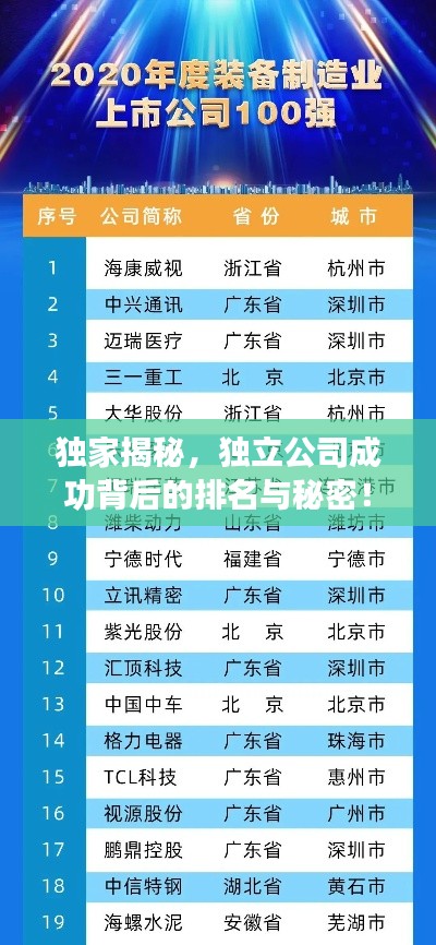随着全球经济的发展和竞争的加剧,独立公司在各行各业崭露头角,展现出强大的竞争力,本文将围绕“独立公司排名”这一主题,探讨独立公司的成功之道,揭示其背后的秘密。