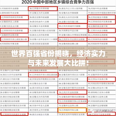 随着全球经济一体化的加速,各省的发展竞争也日益激烈,在世界范围内,一些省份凭借强大的经济实力和潜力,脱颖而出,跻身世界百强省份之列,本文将为您揭示世界100强省排名,探讨其背后的经济实力与未来发展潜力。