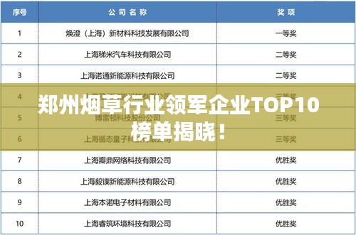 随着烟草行业的不断发展,郑州烟草行业也在逐渐壮大,本文将介绍郑州烟草行业排名前十的企业,这些企业在烟草行业中占据着重要的地位,拥有较高的市场份额和品牌影响力。