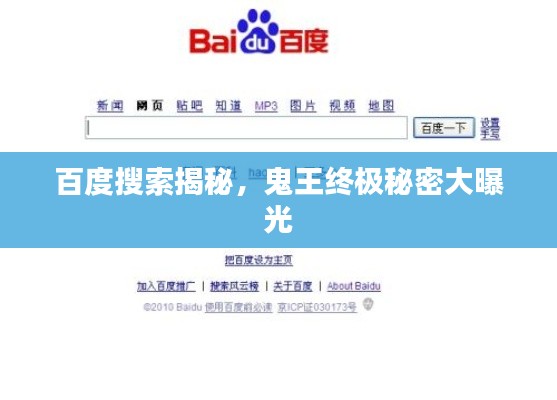 随着互联网的普及,搜索引擎已经成为人们获取信息的重要途径之一,而在众多搜索引擎中,百度以其高效、精准的搜索服务赢得了广大用户的青睐,我们将通过百度搜索,探寻一个神秘而引人入胜的话题——“鬼王终极”。
