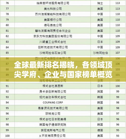 转载请注明来自江西北定建设工程服务体系,本文标题:《全球最新排名揭晓,各领域顶尖学府、企业与国家榜单概览》