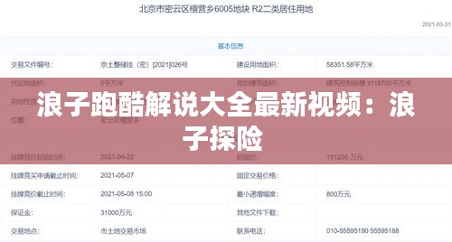大家好,今天我要为大家带来的是最新出炉的浪子跑酷解说大全视频。这个视频由知名跑酷爱好者浪子亲自解说,详细介绍了跑酷的基础技巧、高级动作以及一些实用的跑酷训练方法。下面,就让我们一起来看看这个精彩视频吧!