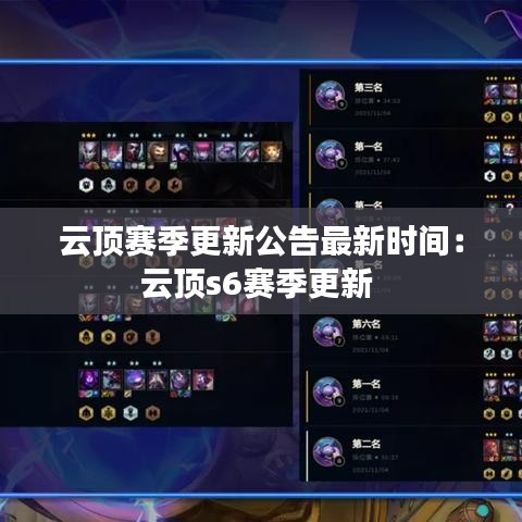 根据官方公告,云顶赛季更新将于2023年4月15日0点正式上线。这意味着所有玩家将在同一时间进入新的赛季,享受全新的游戏内容。