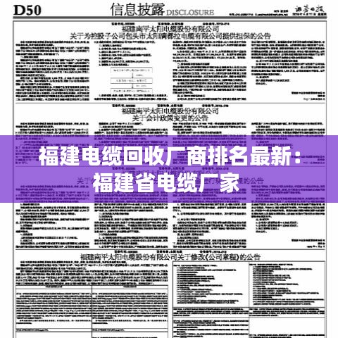 福建省作为中国东南沿海的重要省份,其电缆回收行业近年来发展迅速。随着我国经济的持续增长和城市化进程的加快,电缆需求量不断增加,同时废旧电缆的回收处理也日益受到重视。福建电缆回收厂商众多,竞争激烈,本文将为您介绍福建电缆回收厂商排名的最新情况。