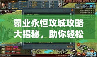 攻城是霸业永恒中的一项重要任务,需要玩家充分了解游戏基础、做好准备工作、掌握攻城技巧和最新策略,注意事项也是不可忽视的,希望本文的攻略内容能够帮助大家更好地掌握攻城技巧,提高成功率,随着游戏的不断更新和变化,玩家需要不断尝试新的方法和战术,以适应游戏的发展,祝大家游戏愉快,攻城成功!
