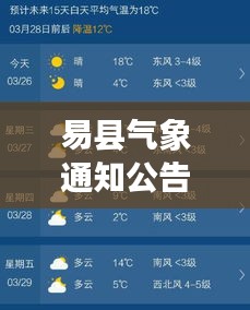 为了方便公众及时了解易县的最新气象情况,以下是一些重要的气象通知公告查询方式: