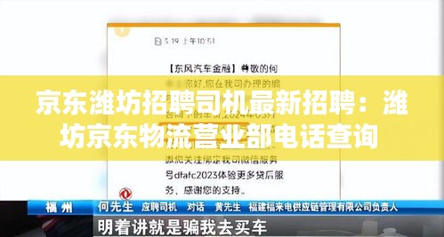 随着电子商务的蓬勃发展,物流行业成为了支撑整个产业链的重要环节。京东作为中国领先的电商平台,一直致力于提供高效、便捷的物流服务。为了满足日益增长的物流需求,京东在潍坊地区最新启动了司机招聘计划,诚邀有志之士加入我们的优质物流团队。