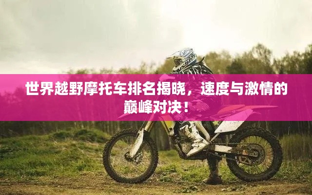 越野摩托车运动是一项充满刺激与挑战的极限运动,全球各地的车手们为之热血沸腾,本文将为您呈现世界越野摩托车排名,带您领略速度与激情的极致展现。