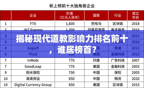 是现代道教排名前十名,这些群体和流派在道教界具有广泛的影响力和代表性,在现代社会,道教依然保持着其传统特色和文化底蕴,同时也在不断地适应和发展,道教的信仰和实践方式,不仅有助于个人修行和心灵成长,也为社会和谐和文化建设做出了重要贡献。