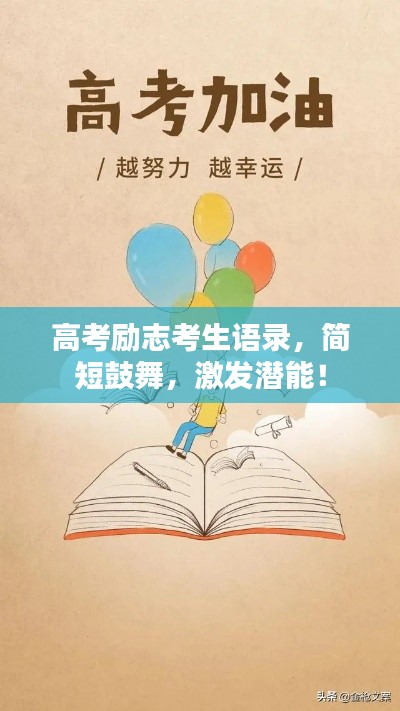 高考是一次人生的洗礼,是一次挑战自我、超越自我的机会,在这个重要的时刻,我们需要给自己加油打气,坚定信心,努力拼搏,以下是一些简短的高考励志考生语录,希望能激励大家在高考中取得好成绩。
