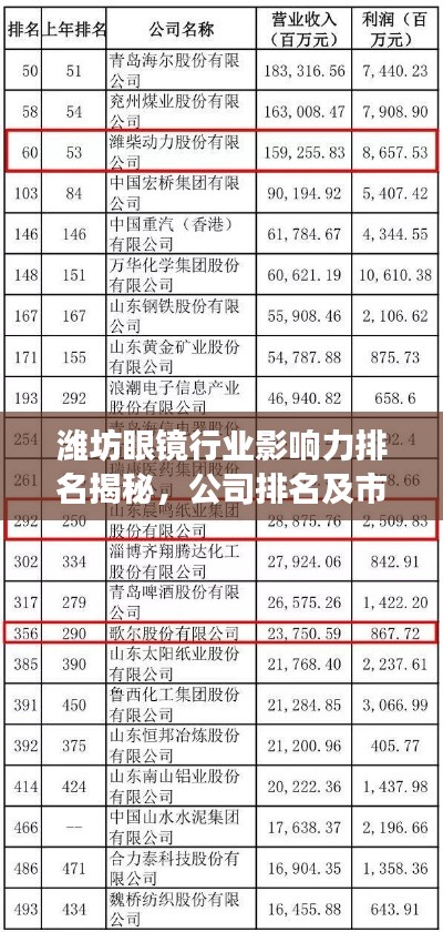 潍坊市,作为山东省的重要城市之一,眼镜行业在这里蓬勃发展,随着人们对视力健康的关注度不断提高,眼镜市场的需求持续增长,本文将探讨潍坊眼镜公司的排名及其行业影响力,为您了解当地眼镜市场提供参考。