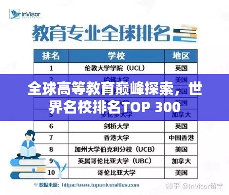在全球化的今天,教育资源的交流日益频繁,世界各国的名校也因此在全球范围内产生了广泛的影响,我们针对全球范围内的名校进行了综合评估,并推出了最新的世界名校排名300,这份排名涵盖了全球范围内的高等学府,反映了全球高等教育的现状和趋势,让我们一起探索这300所世界名校的奥秘。