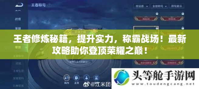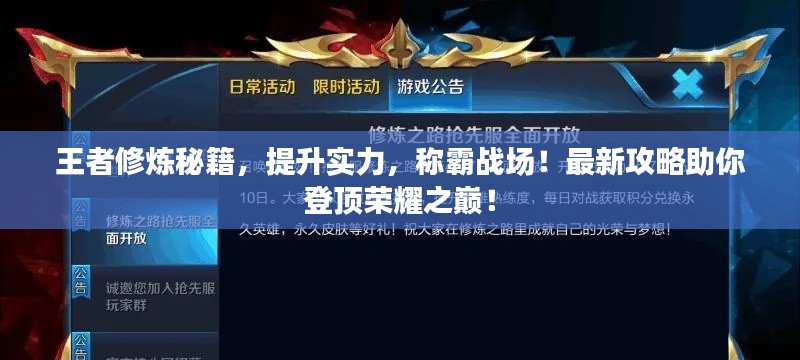 转载请注明来自江西北定建设工程服务体系,本文标题:《王者修炼秘籍,提升实力,称霸战场!最新攻略助你登顶荣耀之巅!》