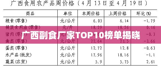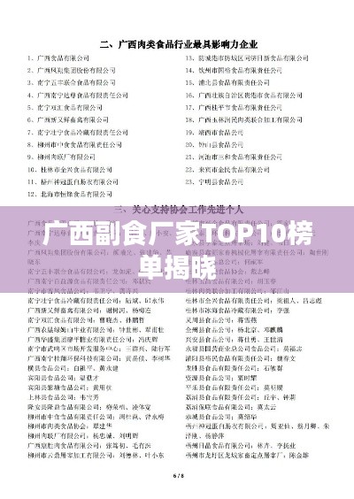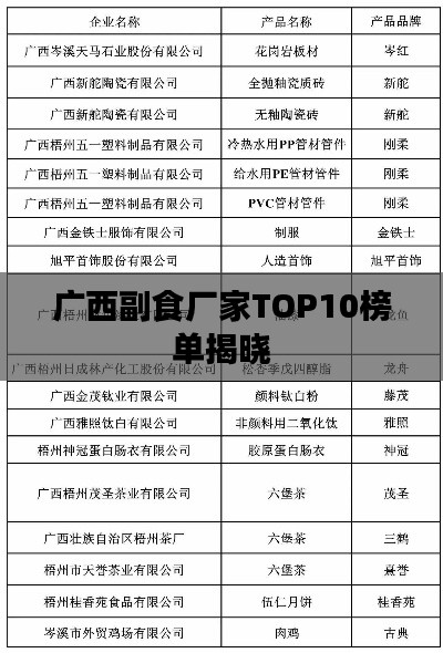 广西作为中国南方的重要省份,以其丰富的自然资源和繁荣的经济发展态势,吸引了众多副食厂家的入驻,这些副食厂家以其优质的产品和服务,赢得了广大消费者的信赖和喜爱,我们将为您介绍广西副食厂家排名前十名,让我们一起了解这些在副食行业表现出色的企业。