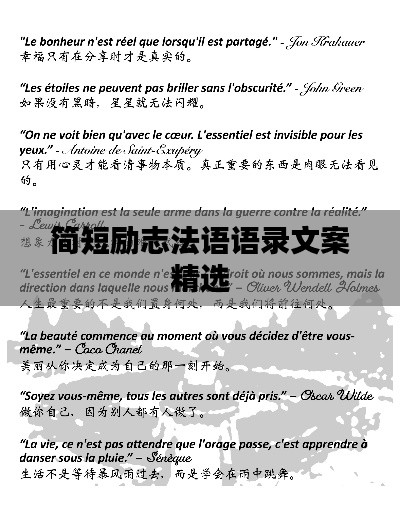 法语,一种优雅而富有韵律的语言,常常能激发人们内心深处的力量,在追求梦想的道路上,我们需要励志的话语来鼓舞自己,激发前进的动力,以下是一些简短的法语励志语录,希望能为你带来正能量。