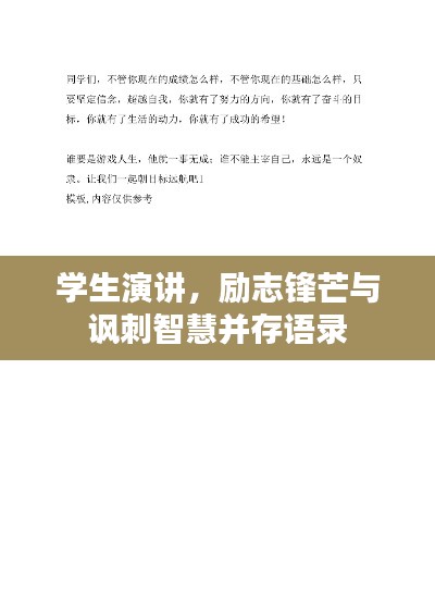 亲爱的同学们,大家好!我站在这里,想和大家分享一些关于“学生演讲励志讽刺语录”的思考,在这个充满挑战与机遇的时代,我们既是幸运的一代,也是肩负重任的一代,在我们的成长道路上,励志与讽刺并存,它们像两面镜子,反映出我们的优点和不足,促使我们不断前行。