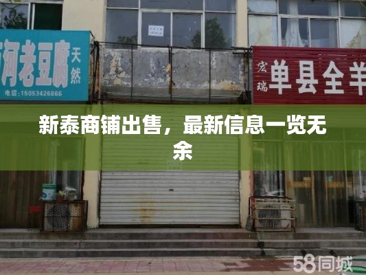 随着城市的发展与繁荣,新泰商铺市场日益活跃,各类商铺出售信息层出不穷,本文将为您带来最新的新泰商铺出售信息,带您了解当前市场状况。