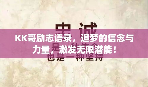 KK哥励志语录,是一种信念,是一种力量,在这个充满挑战的时代,让我们怀揣KK哥的精神,勇敢追梦,坚定信念,勇往直前,无论遇到多少困难,都要坚持自己的梦想,永不放弃,因为,只有坚持,才能看到曙光;只有勇敢,才能实现梦想,让我们一起,用KK哥的精神,书写属于自己的励志故事。