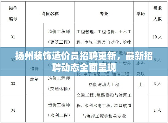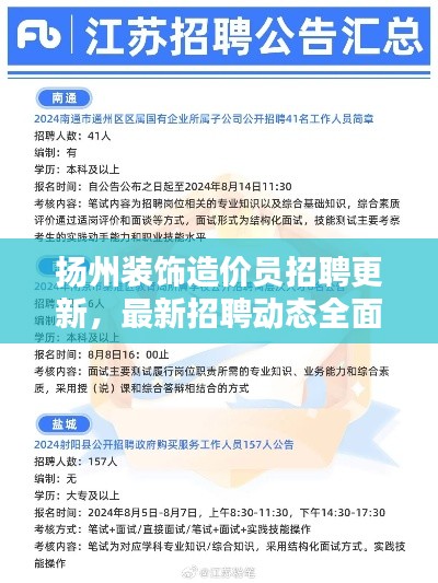 随着扬州装饰行业的蓬勃发展,装饰造价员成为了行业内炙手可热的职业,为了满足企业对专业人才的需求,扬州各大装饰公司纷纷在招聘网站上发布最新招聘信息,诚邀有志之士加入,本文将为您详细介绍扬州装饰造价员的最新招聘动态及相关信息。