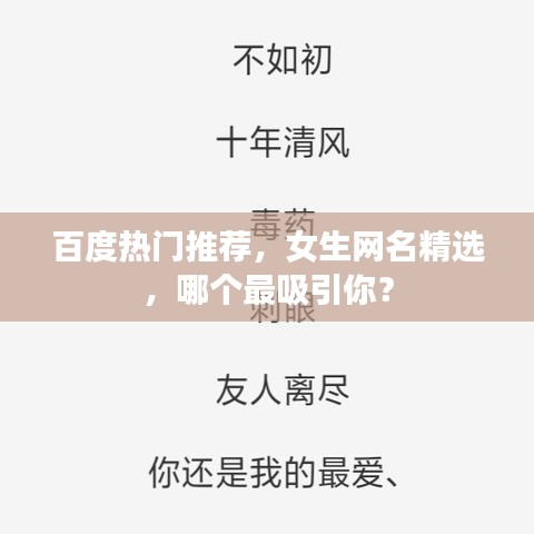 转载请注明来自江西北定建设工程服务体系,本文标题:《百度热门推荐,女生网名精选,哪个最吸引你?》
