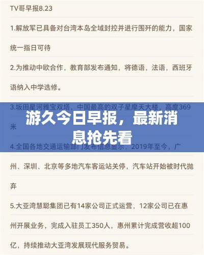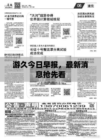 尊敬的读者朋友们,早上好!游久今日早报为您带来最新的全球消息,让您在一天的开始时刻掌握全球动态,以下是今日的最新消息。
