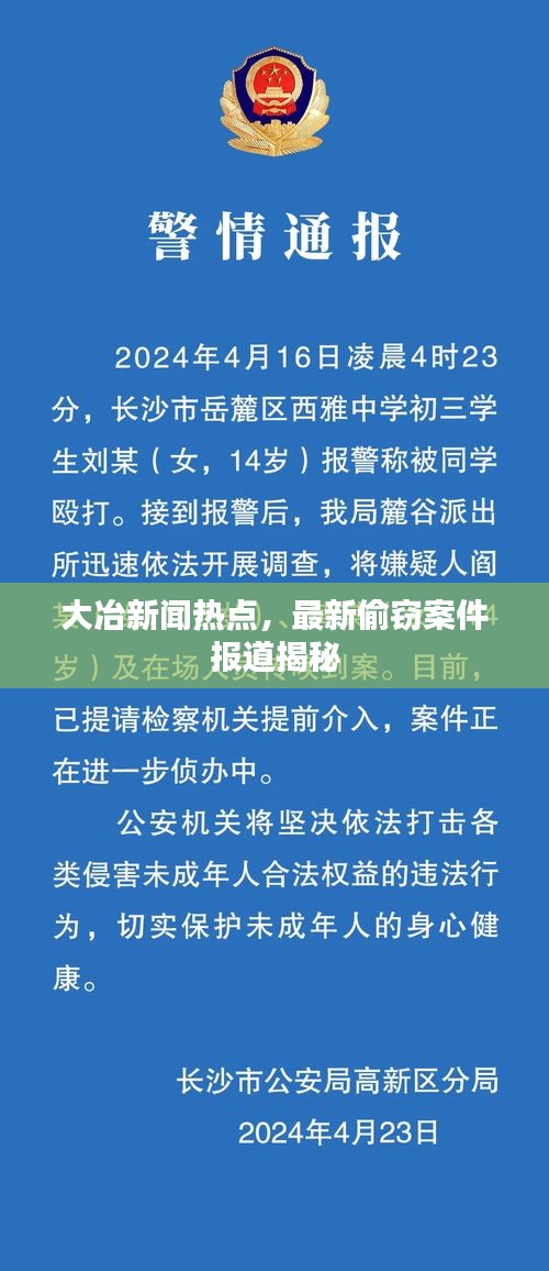 大冶市发生了一起备受关注的偷窃案件,引起了社会各界的广泛关注,本文将对这一案件进行详细的报道,让读者了解案件的最新进展和相关情况。