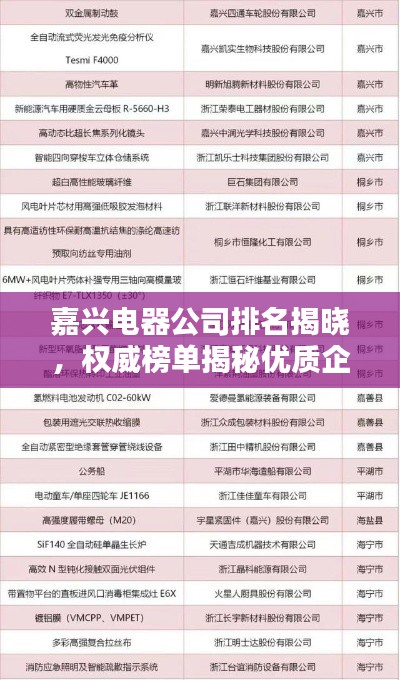 嘉兴,作为浙江省的重要城市,电器行业在这里蓬勃发展,众多电器公司如雨后春笋般涌现,本文将为您详细介绍嘉兴电器公司的排名,带您了解这些企业的实力与贡献。
