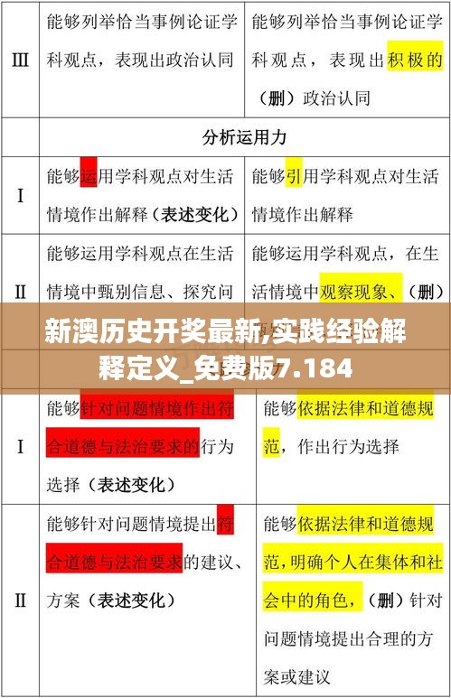 总体而言,“新澳历史开奖最新,实践经验解释定义_免费版7.184”政策文件是对澳门政策实践的深刻反思和未来规划的明确指引。通过历史开奖数据的分析和实践经验的总结,澳门政府将继续推进政策创新,以实现澳门的长治久安和持续繁荣。