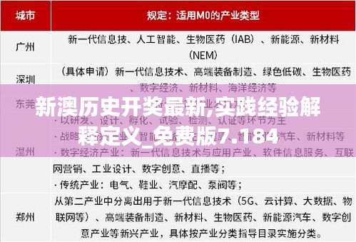 澳门特别行政区政策文件以其独特的历史背景和丰富的地方特色而备受关注。本文致力于探讨澳门政策文件的实践意义,并结合历史开奖信息,对最新政策进行详细解析。以下是对澳门政策文件——“新澳历史开奖最新,实践经验解释定义_免费版7.184”的详细介绍和解读。