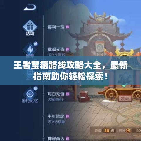 随着王者荣耀的火热发展,越来越多的玩家热衷于寻找游戏中的隐藏福利,王者宝箱作为游戏内的一大特色,含有各种稀有道具和珍贵奖励,吸引了无数玩家的目光,本文将为大家提供一份最新的王者宝箱路线攻略,帮助大家更好地寻找和获取宝箱。