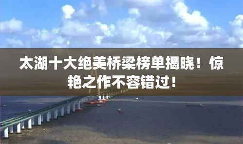让我们共同期待并欣赏太湖上的这些美丽大桥,感受它们带来的便捷与美好,也感谢那些为桥梁建设付出辛勤努力的人们,他们用智慧和汗水,为我们创造了这一道道美丽的风景线。