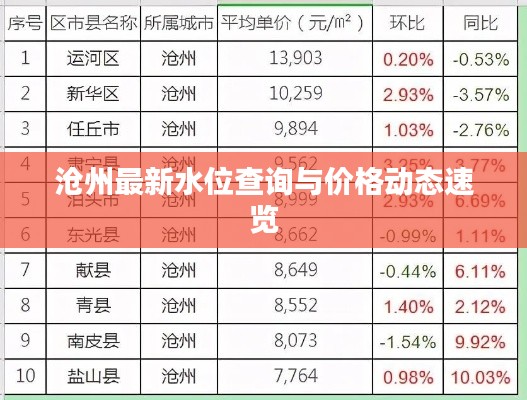 随着季节的变化和水利工程的调整,沧州地区的水位情况一直备受关注,对于关心沧州水位的人们来说,了解今日沧州的水位情况以及相关的最新价格信息至关重要,本文将为您提供最新的沧州水位查询信息及相关价格动态。