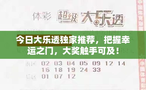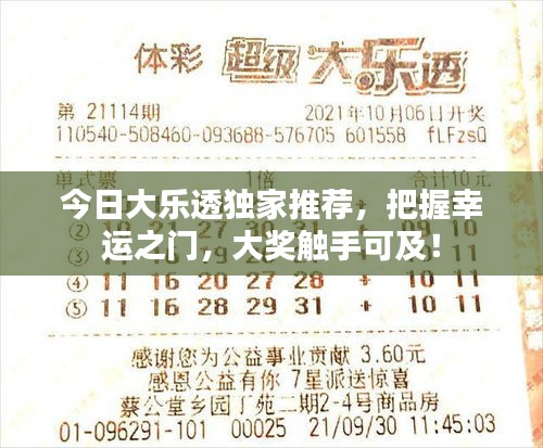 随着科技的进步和社会的发展,人们对未来的期待和对幸运的渴望愈发强烈,大乐透作为一种广受欢迎的彩票游戏,吸引了无数人的目光,我们将为大家带来最新的大乐透推荐,让你有机会把握幸运,赢取人生的大奖!