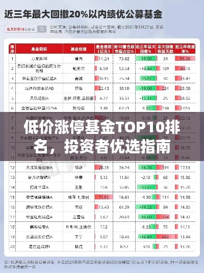 随着金融市场的繁荣,基金投资逐渐成为大众理财的重要方式之一,在众多基金中,低价涨停基金因其高收益潜力备受关注,本文将为您介绍当前市场上备受瞩目的低价涨停基金排名前十名,帮助投资者更好地把握投资机会。