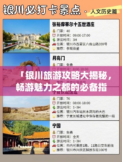 银川,这座美丽的城市,以其丰富的历史文化和壮丽的自然风光吸引着无数游客,本文将为您提供一份详尽的银川旅游攻略,带您领略这座城市的魅力。