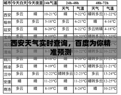 通过百度搜索,我们可以得知西安的实时天气状况及未来一周的天气预报,在春季,西安的气候较为温和,白天阳光明媚,夜晚稍带凉意,夏季炎热潮湿,时有阵雨,需要注意防晒和防暑降温,秋季凉爽宜人,是旅游的最佳时节,冬季较冷,有时会下雪,需要注意保暖。