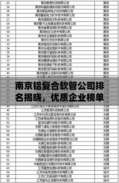 南京,一座历史悠久的城市,不仅是江苏省的省会,也是中国东部地区重要的工业基地之一,在这座充满活力的城市中,铝复合软管行业蓬勃发展,众多公司凭借卓越的产品质量和良好的服务赢得了市场口碑,本文将为您介绍南京地区的铝复合软管公司排名。