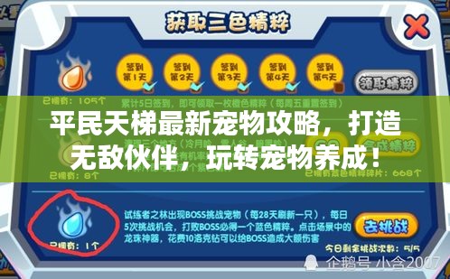 随着游戏的不断更新,攻略也会有所调整,持续关注最新攻略可以了解最新的培养方法、阵容搭配等,帮助平民玩家更好地培养宠物。