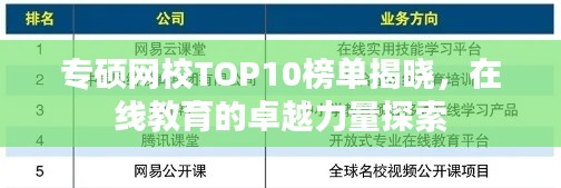 随着互联网的普及和技术的飞速发展,在线教育的需求与日俱增,专硕网校作为在线教育的重要载体,为广大学子提供了便捷、高效的学习途径,本文将为您揭晓专硕网校排名前十名,探索在线教育的卓越力量。