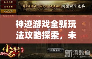 随着游戏技术的不断进步,各种游戏都在不断推出新的玩法和更新内容,对于喜欢玩神迹游戏的玩家来说,掌握最新的玩法攻略是非常重要的,本文将结合最新的神迹玩法攻略视频,带领大家探索未知的游戏世界。