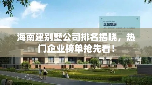 海南,这个美丽的热带岛屿,以其得天独厚的自然资源和优越的气候条件吸引了无数人的目光,随着海南房地产市场的蓬勃发展,建别墅已成为一种流行趋势,本文将为您介绍海南建别墅公司的排名,以便您更好地了解海南的别墅建设市场。