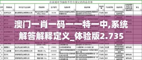 澳门,作为中国特别行政区之一,具有独特的地理、文化和政策环境。近年来,澳门不断优化其政策体系,以适应全球化发展的需求和挑战。本文将以"澳门一肖一码一一特一中,系统解答解释定义_体验版2.735"为题,对澳门政策文件进行详细解读和介绍,以期为读者提供更深入的理解和体验。